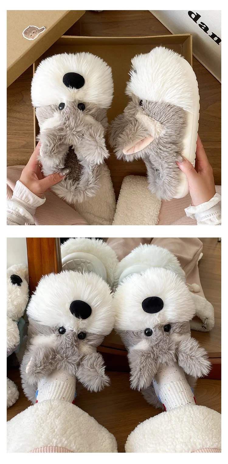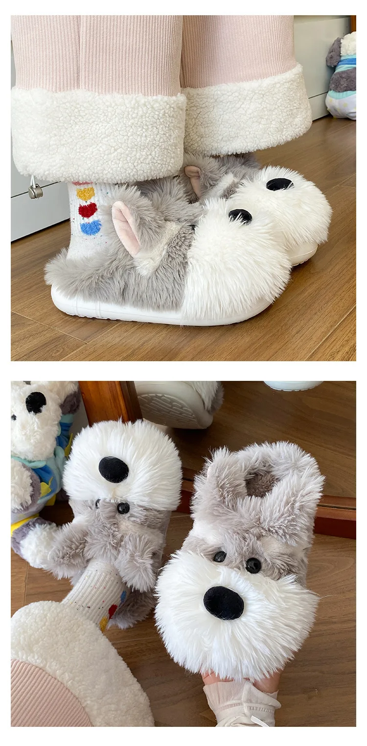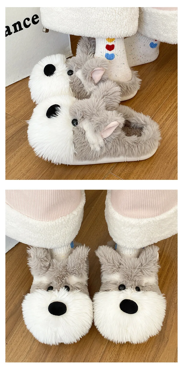 Snuggle up in warmth and style with these Adorable Schnauzer Plushy Shoes, designed for dog lovers who enjoy cozy comfort. Made with a soft plush lining and fur upper, these slippers keep your feet warm all winter while showcasing a charming Schnauzer pattern that adds a playful touch to your indoor look.