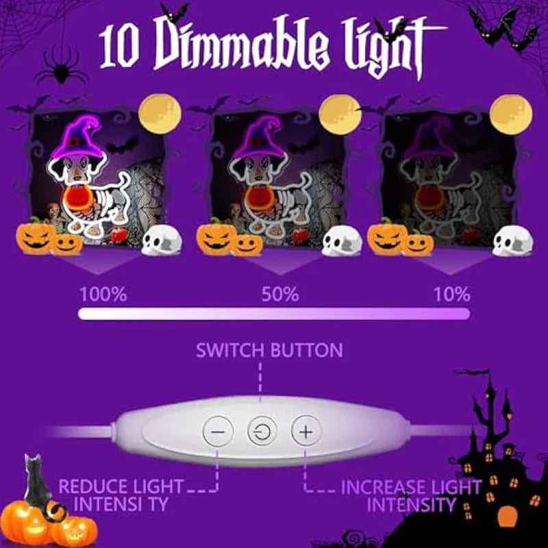 This spooky-cute LED neon light combines Halloween fun with dachshund charm, creating the perfect ambiance for your seasonal decorations. The vibrant neon glow brings your skeleton pup to life, making it an eye-catching centerpiece for any room.